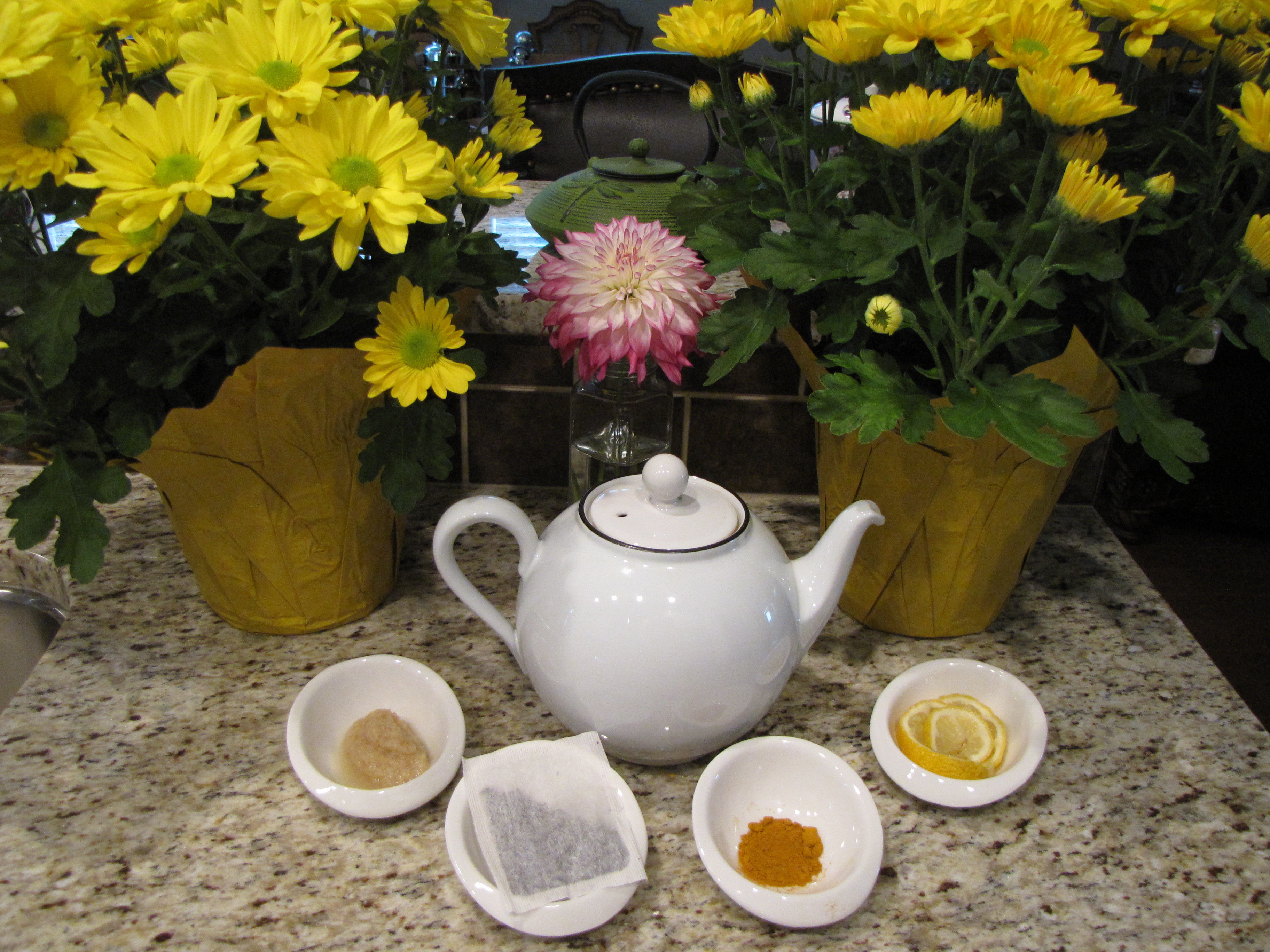 If you want a stronger tea taste, make this with two tea bags. Ginger and turmeric are strong so often the tea taste gets lost so another reason I don’t use my good tea. I like the ginger to be dominant so I add more of it and keep the turmeric to a bit, you can always add more if turmeric is your thing. I like this brew because turmeric helps with sore muscles and ginger aides in digestion and lemon is a natural cleanser, now I don’t feel so guilty for eating so much at our family Thanksgiving dinner!