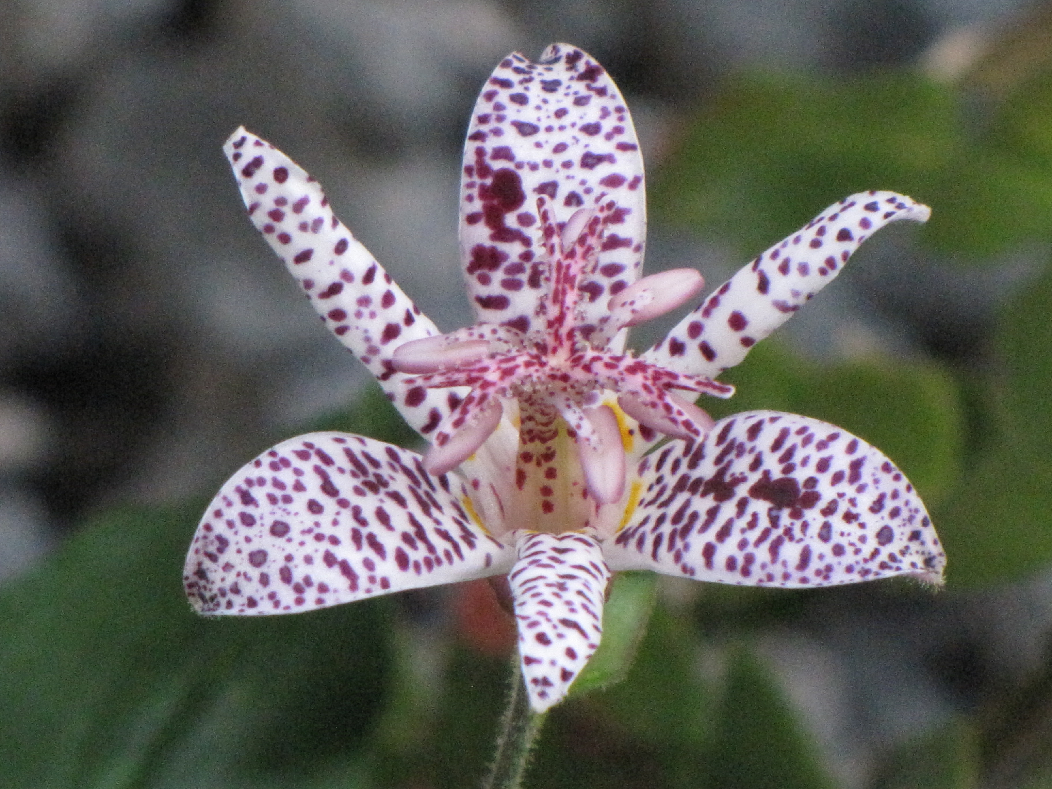 When we lived in Maple Ridge we had a nice couple that lived behind us named Dan and Jean, I really enjoyed visiting with them, unfortunately the fence that separated us was terraced so it was 12 feet up from my side. Dan liked to give me plants so he would call out to see if I was in the garden and he would bag up and lower plants down to my side. My favourite plant he gave me was a quirky, little toad lilly, it’s so pretty and a great addition to my new space.