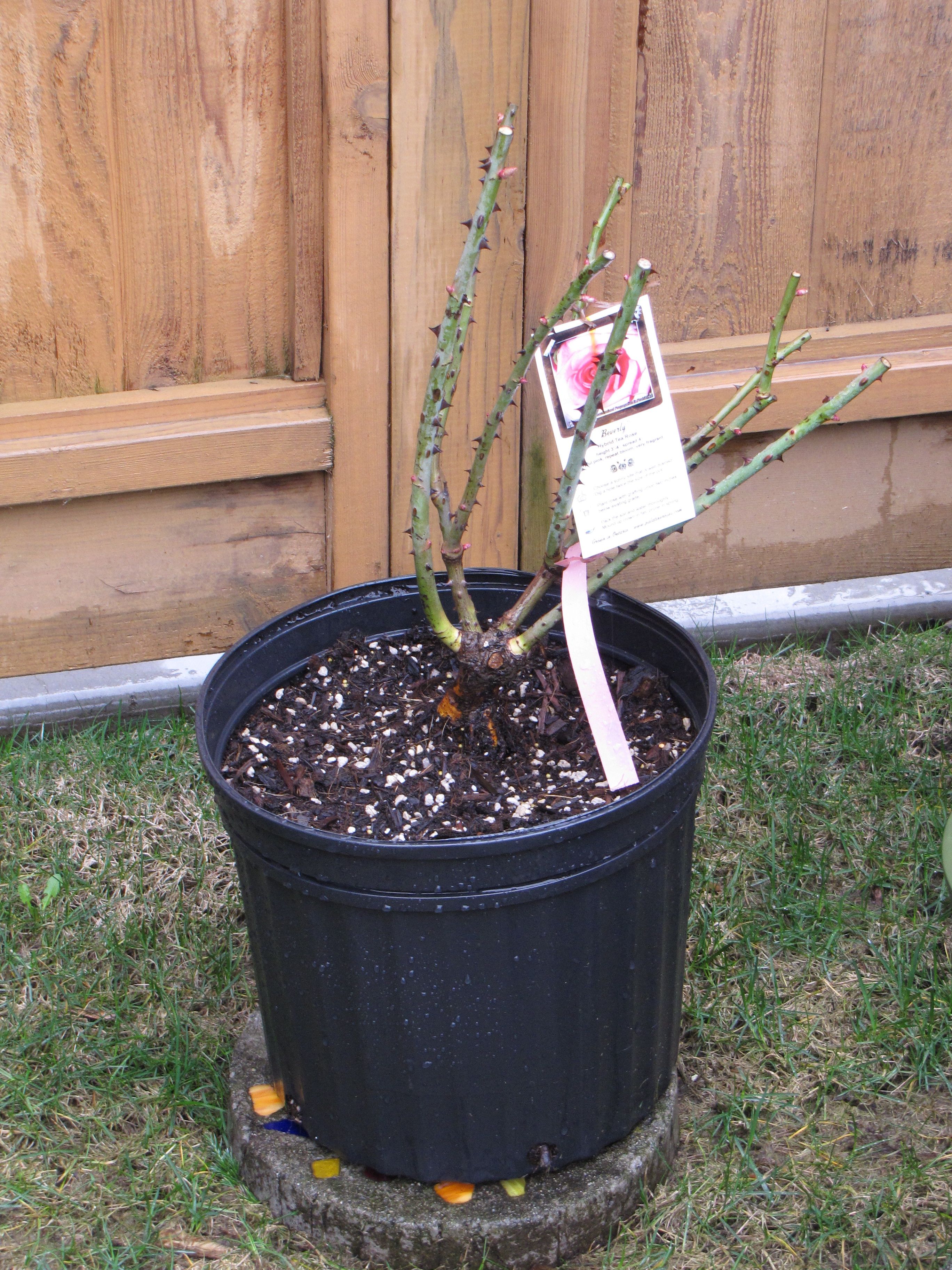 ‘Beverly’ arriving home from Select Roses, then a few months later already full of blooms in the spring of 2014!