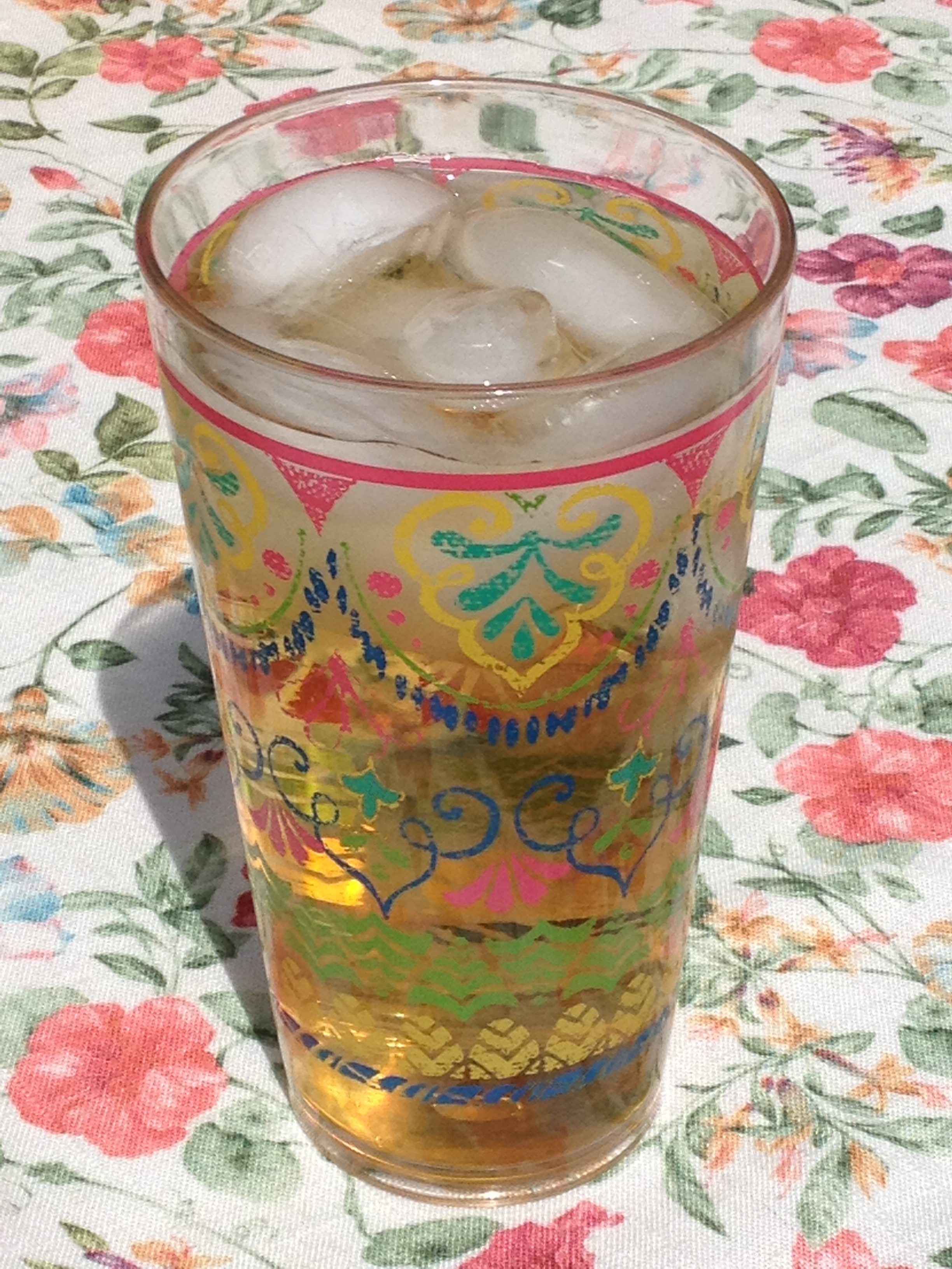 It has been hot here lately, especially for June, which in the past has been really rainy! So rather than worry about the lawn going brown and all the plant flopping that’s happening, (I will water the poor garden as soon as it cools a bit), I decided to try to make home-made iced tea from real tea leaves. I have to admit before I would drink the powdered stuff but we all know it’s not real tea and most likely not that healthy. For my experiment I selected a nice mild green jasmine infused with tiny rosebuds and petals. When I brewed this tea hot I found it to be way too weak so wanted to try it cold. I brewed the tea hot in the pot then put the pot in the fridge, nothing too technical! About 2 hours later I poured a glass over ice and to my surprise the flavour was stronger cold and very refreshing!