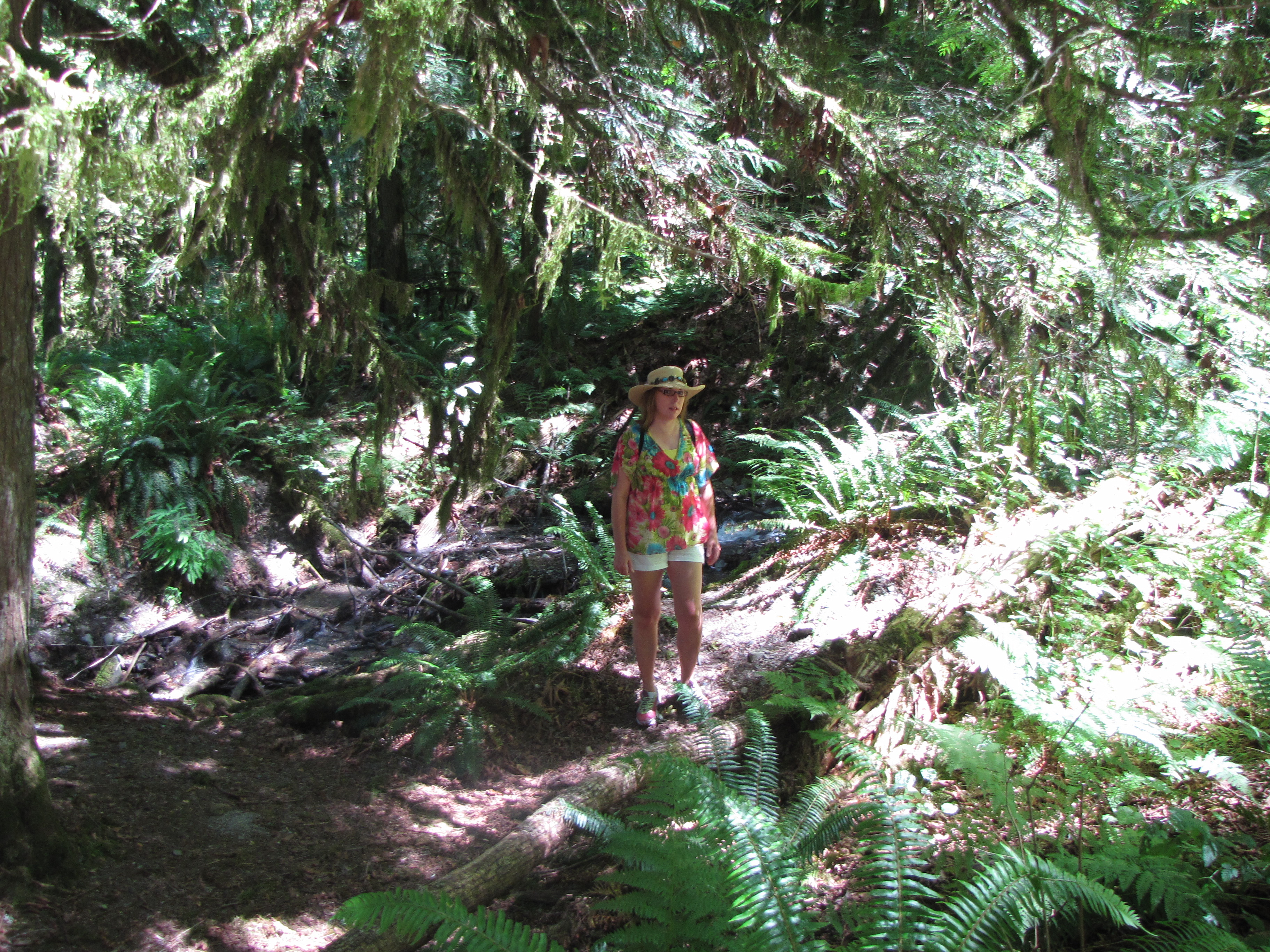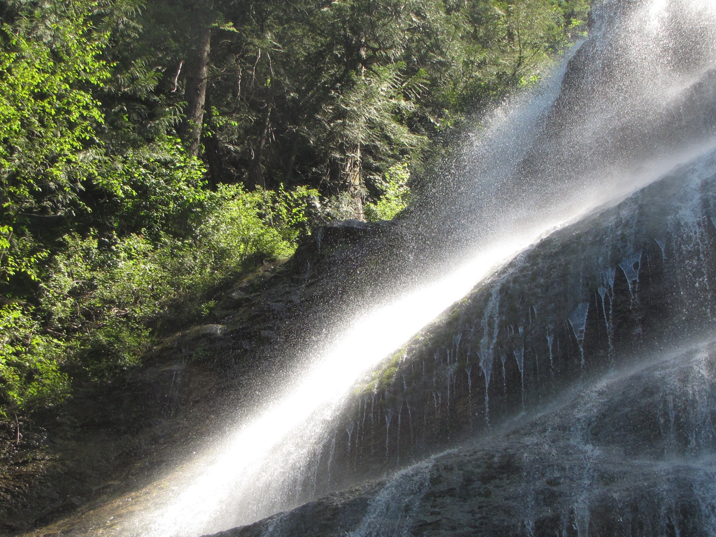 During the summer, I thought it would be fun to do a series of different places to visit and while there enjoy the flora, fauna and a cup of iced tea. Fist stop, Bridal Veil Falls just south of Hope, BC. This area became a park in 1965 so like me it turns 50 this year! Along the trail there are streams coming out of the mountains and the way the sun was shining it really enhanced the greenery of the area.