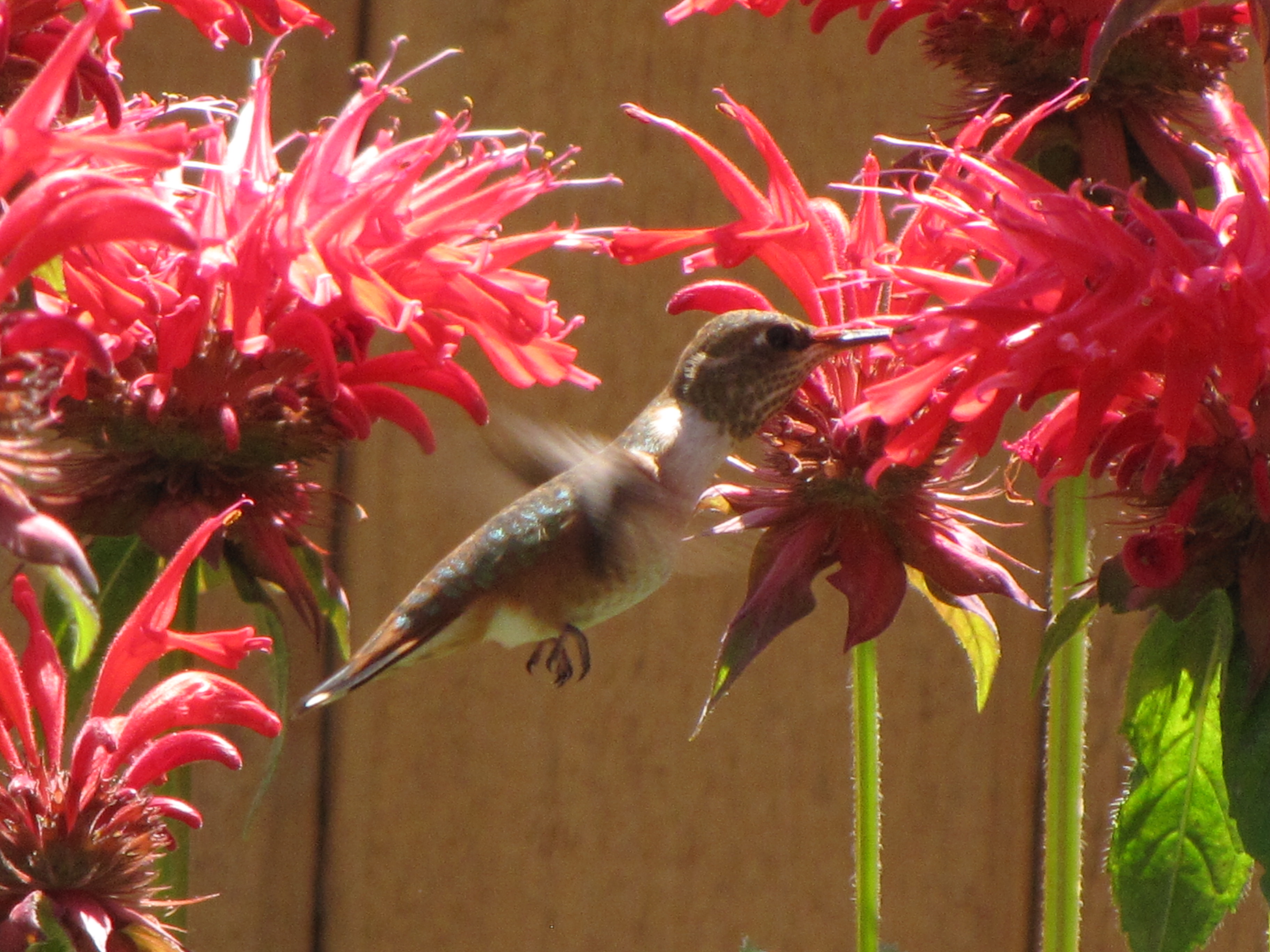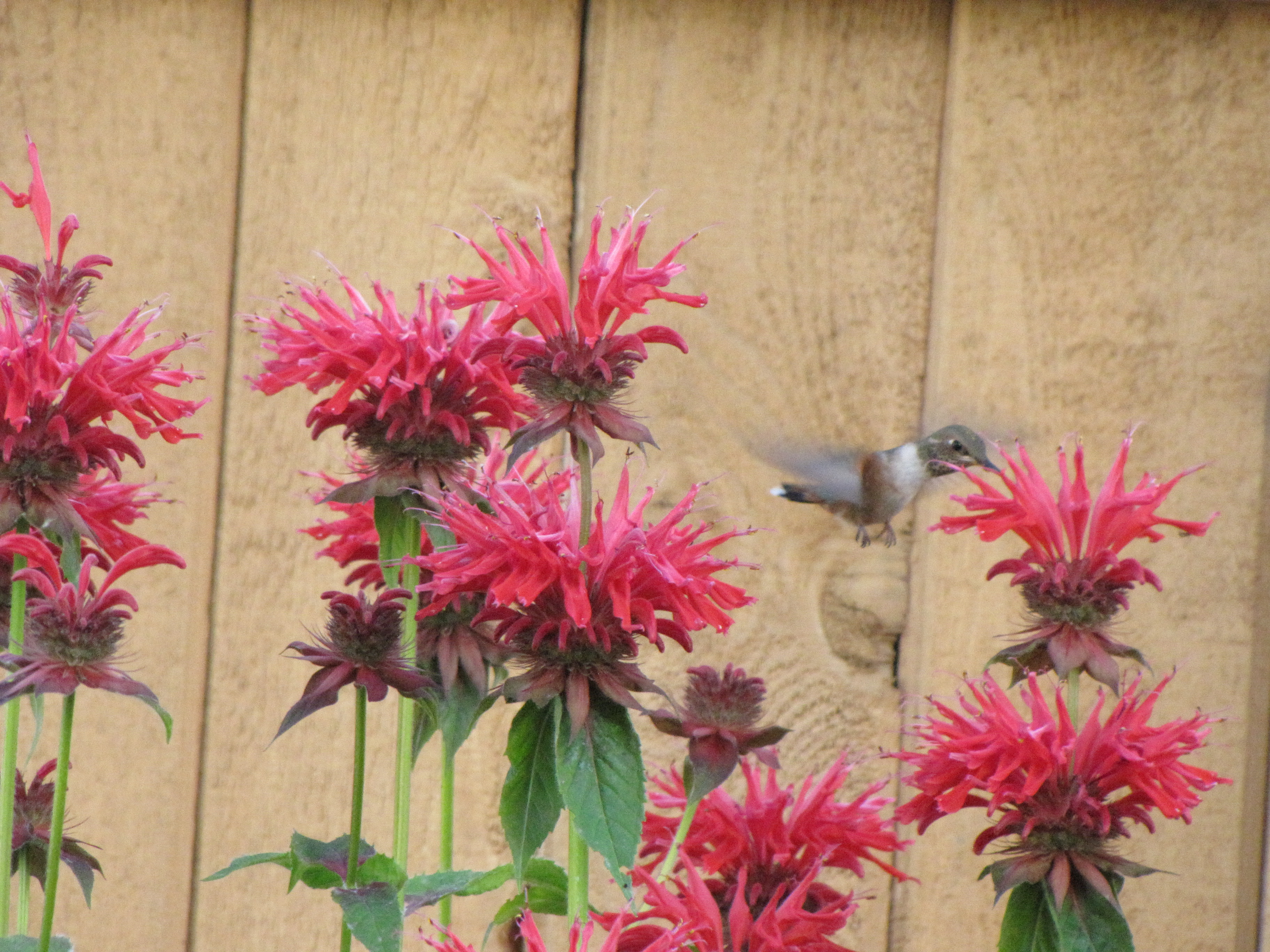 It is so much fun to sit and watch the hummingbirds as they zip and duck in the Bee Balm! In the one picture above the birdie is so fat I am surprised it can fly! The mauve Bee Balm is called ‘Violet Queen’, it’s a nice addition to the red ones.